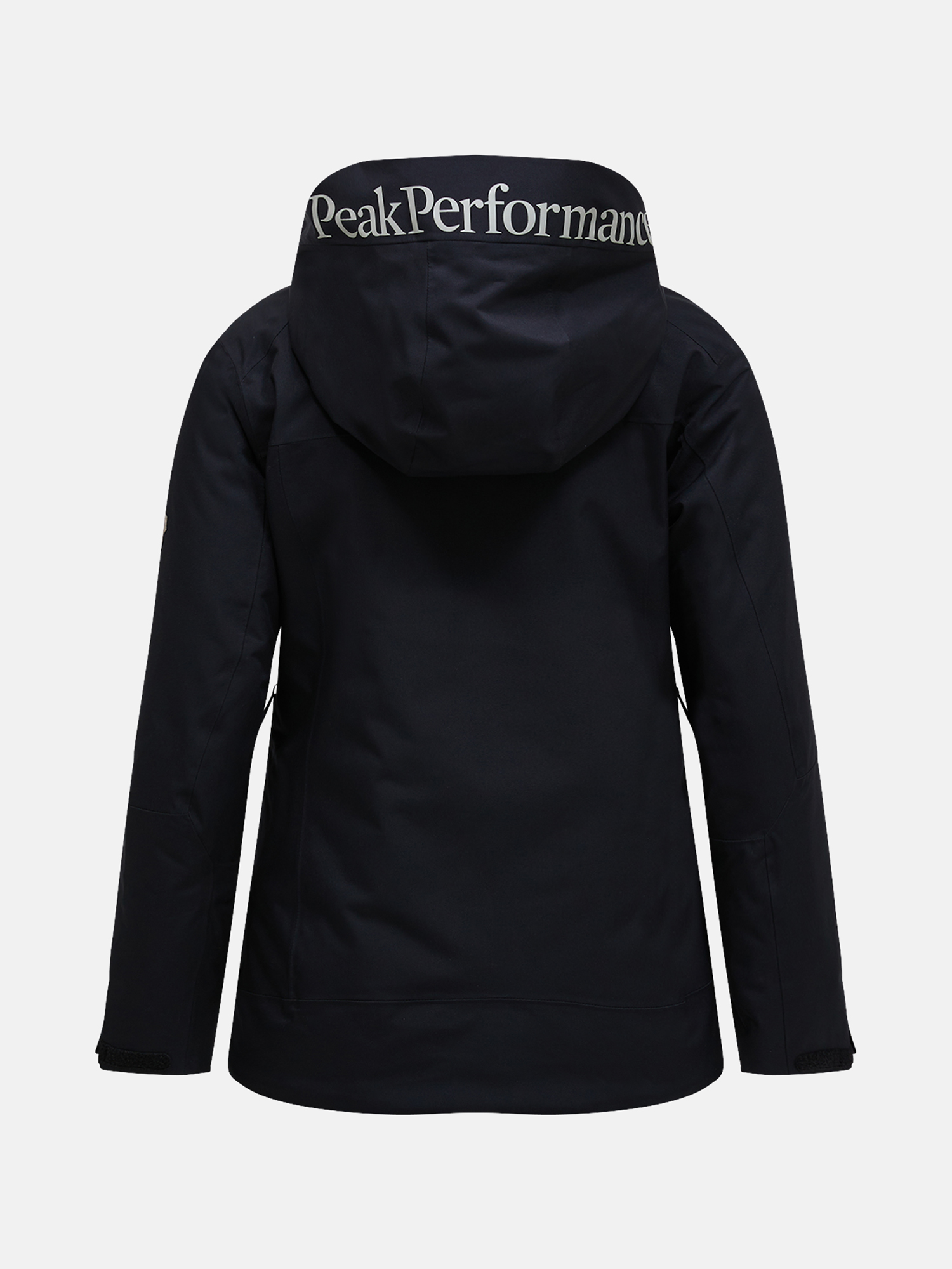 - Dikke Peak Performance-print op de capuchon