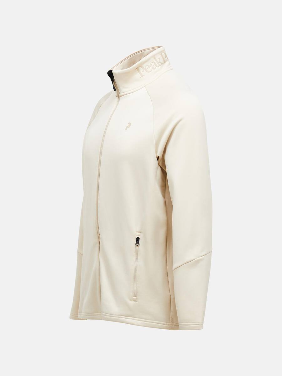 Deze zachte en elastische midlayer is perfect voor elk outdooravontuur, van skiën tot wandelen. Gemaakt van een comfortabele technische stof die snel droogt, zelfs tijdens intensieve activiteiten. De jas heeft een dubbellaagse kraag met kinbescherming voor een comfortabele pasvorm zonder schuren en ritszakken.